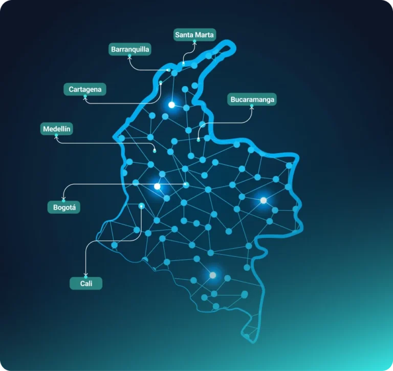 Bogotá Medellín Cali Barranquilla Cartagena Bucaramanga Santa Marta y + 53 ciudades y municipios a nivel nacional
